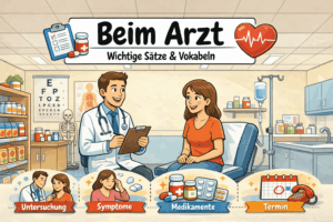 Almanya’da günlük hayat serimize ‘Doktora Gitme’ konusuyla devam ediyoruz. Bu içerikte hem sağlık terimlerini, hem vücudumuzun bölümlerini hem de doktor ve hastane…